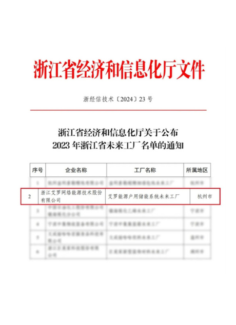2024:“韦德1946能源户用储能系统”上榜浙江省未来工厂